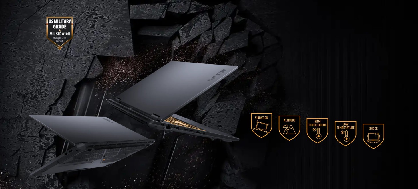 Aby tyto notebooky získaly označení TUF Gaming, musejí úspěšně obstát v náročných testech baterie podle normy MIL-STD-810H. Testovaná zařízení jsou vystavena pádům, vibracím, vlhkosti a extrémním teplotám, aby byla zajištěna jejich spolehlivost. Notebook F16 je spolehlivý i v těch nejnáročnějších podmínkách a je více než schopen odolat náhodným nárazům a pádům, které přináší běžný život.
