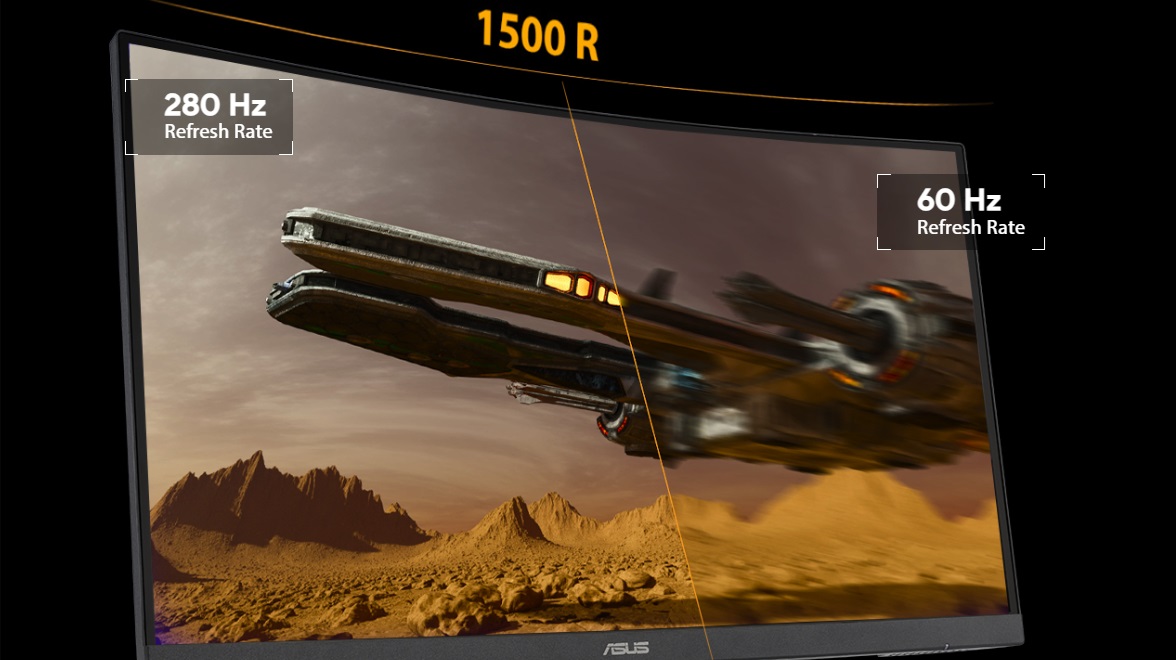TUF Gaming VG27VQM1B poskytuje ohromující obraz ze všech úhlů díky zakřivení 1500R, které zajišťuje, že každý bod je stejně vzdálený od vašich očí. Obnovovací frekvence 280 Hz decimuje zpoždění a rozmazání pohybu, abyste měli navrch ve střílečkách z pohledu první osoby, závodních hrách, strategiích v reálném čase a sportovních titulech. Tato ultrarychlá obnovovací frekvence vám umožní hrát na nejvyšší vizuální nastavení a umožní vám okamžitě reagovat na dění na obrazovce - takže se vám podaří první úder.