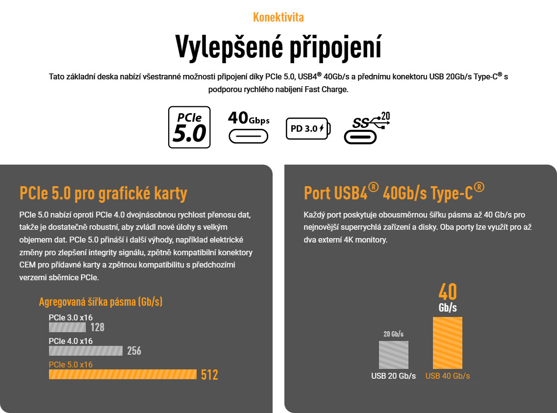 * 1x M.2_1 (Key M), typ 2280 (podporuje režim PCIe 5.0 x4)