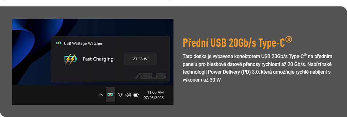 * 1x USB 20Gb/s (podpora USB typ-C® s až 30W PD Fast-charge)