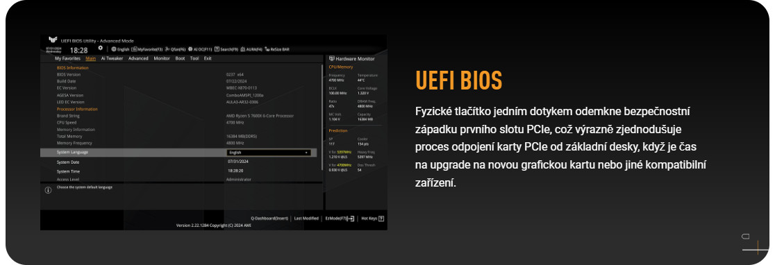 RAID řadič: AMD RAIDXpert2 Technology podporuje jak PCIe RAID 0/1/5 (pouze CPU AMD Ryzen™ řady 9000)/10, tak SATA RAID 0/1
