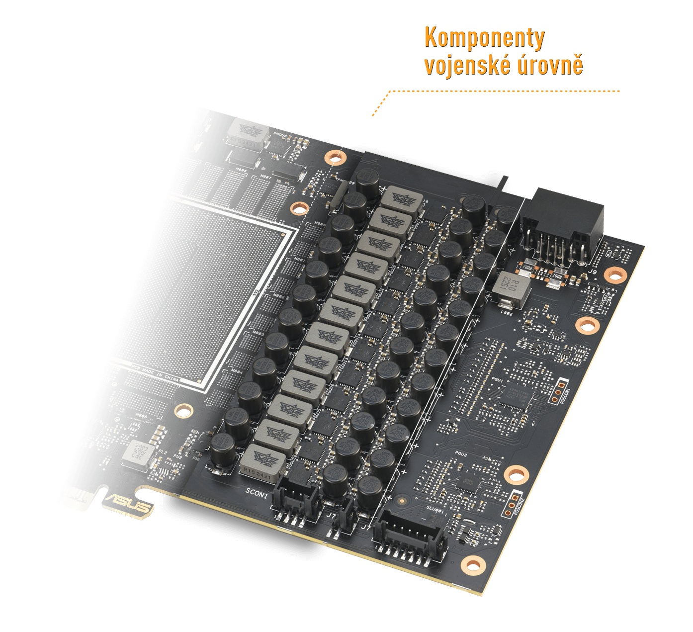 Certifikované cívky TUF vojenského standardu a MOSFETy dodávají GPU robustní napájení, což pomáhá zlepšit stabilitu systému.