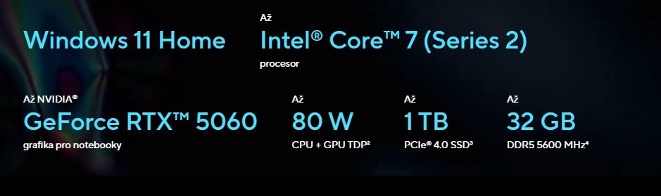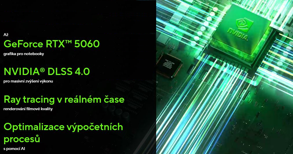 Zlepšete svĂ© hranĂ s grafickou kartou GeForce RTX™ 5060 pro notebooky. PonoĹ™te se do neuvěřitelnĂ©ho realismu dĂky pokroÄŤilĂ˝m technologiĂm ray-tracing a DLSS a nechte AI akceleraci nastartovat vaše tvĹŻrÄŤĂ projekty. ASUS V16 nabĂzĂ bezkonkurenÄŤnĂ vĂ˝kon a vizuálnĂ vÄ›rnost, aĹĄ uĹľ objevujete ohromujĂcĂ hernĂ svÄ›ty, nebo navrhujete svĹŻj dalšà velkĂ˝ projekt. Zásluhou DLSS 4 Multi Frame Generation objevĂte hernĂ vĂ˝kon novĂ© generace, kterĂ˝ pĹ™inášà vyššà snĂmkovou frekvenci, lepšà obraz a naprosto plynulĂ© hranĂ. VyuĹľijte na maximum svou sĂlu k hranĂ za hranicemi moĹľnostĂ.