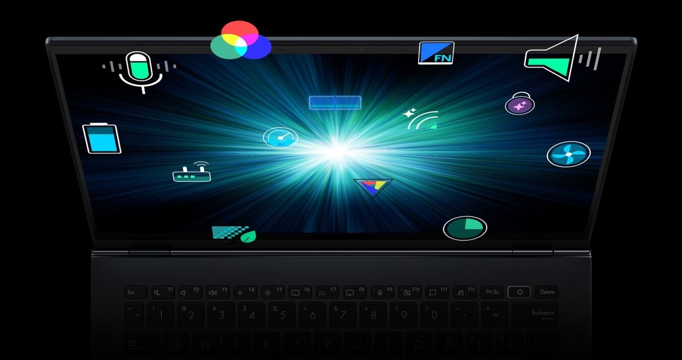 Pro zajištění výjimečných zážitků při práci na dálku a videokonferencích je notebook vybaven technologií ASUS AI Noise-Canceling, která využívá strojové učení k izolaci nežádoucího hluku od lidské řeči. Tato technologie pomáhá odfiltrovat okolní hluk, což přispívá k optimální kvalitě skupinových konferenčních hovorů. Funkce ASUS AI Noise-Canceling Microphone v aplikaci MyASUS dokáže odfiltrovat okolní hluk - takže vždy uslyšíte, co říkají ostatní.