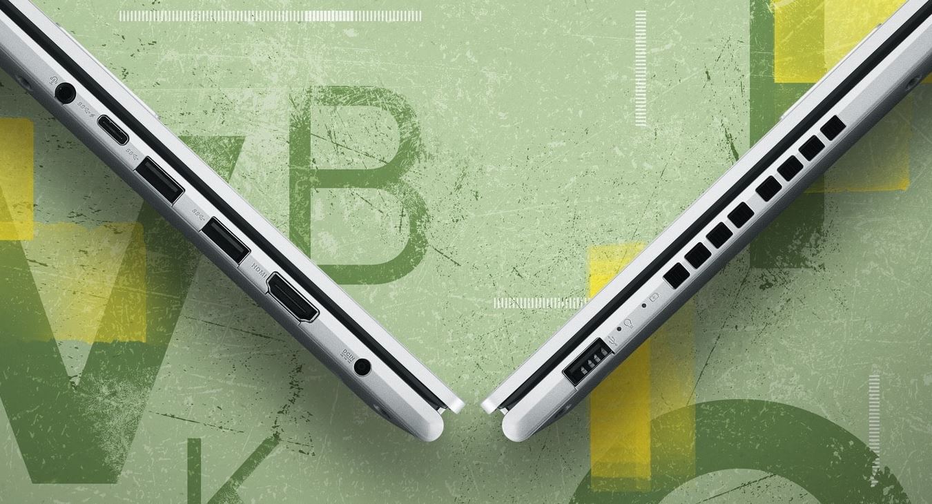 S notebookem Vivobook 15 a jeho bohatou výbavou konektorů se vždy připojíte. K dispozici je port USB-C® 3.2 Gen 1, dva porty USB 3.2 Gen 1 Type-A, port USB 2.0, výstup HDMI® a kombinovaný audio konektor - takže k notebooku snadno připojíte všechny stávající periferie, monitory a projektory.