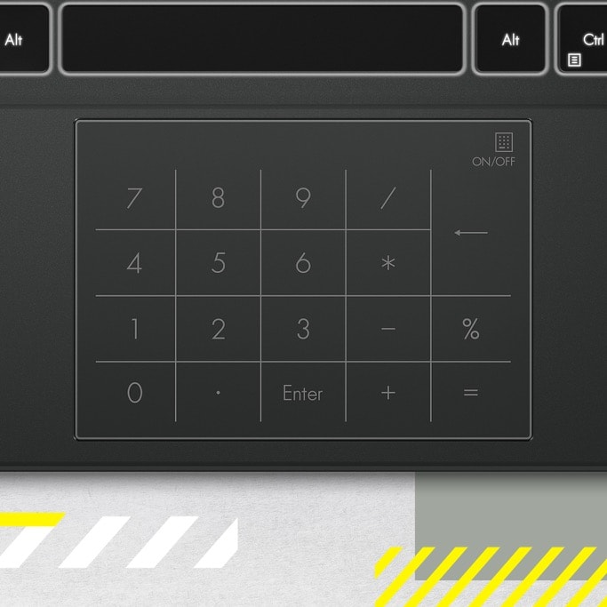 Vivobook Go 14 je vybaven volitelnou funkcí ASUS NumberPad 2.0, což vám usnadní práci, když je třeba zadávat čísla: jednoduše klepněte na ikonu touchpadu a zapněte zadávání čísel. Volitelné podsvícení klávesnice6 na notebooku Vivobook Go 14 je ideální pro práci v tmavém prostředí.
