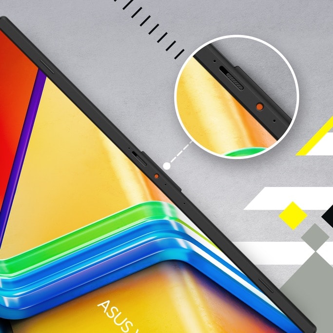 Vivobook Go 14 bere vaše soukromí a bezpečnost velmi vážně. Integrovaná krytka posunutím zakryje webovou kameru, a zajistí vám tím okamžité soukromí. Ochrání vás tak před zvědavými pohledy a rušením.