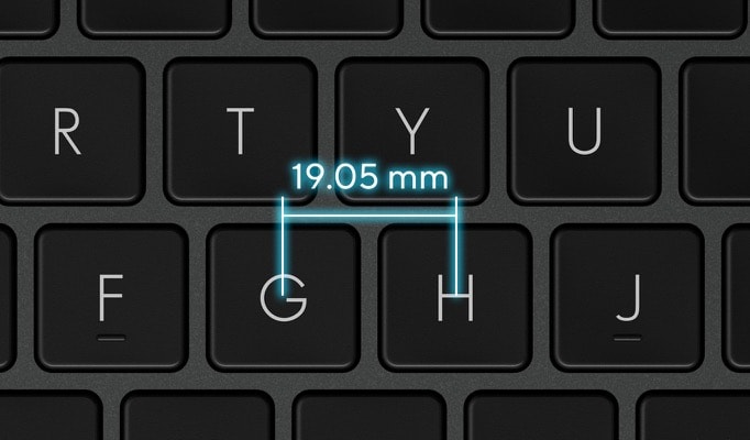 Rozteč kláves plné velikosti 19,05 mm je stejná jako u desktopové klávesnice, takže můžete psát pohodlně a přesně.