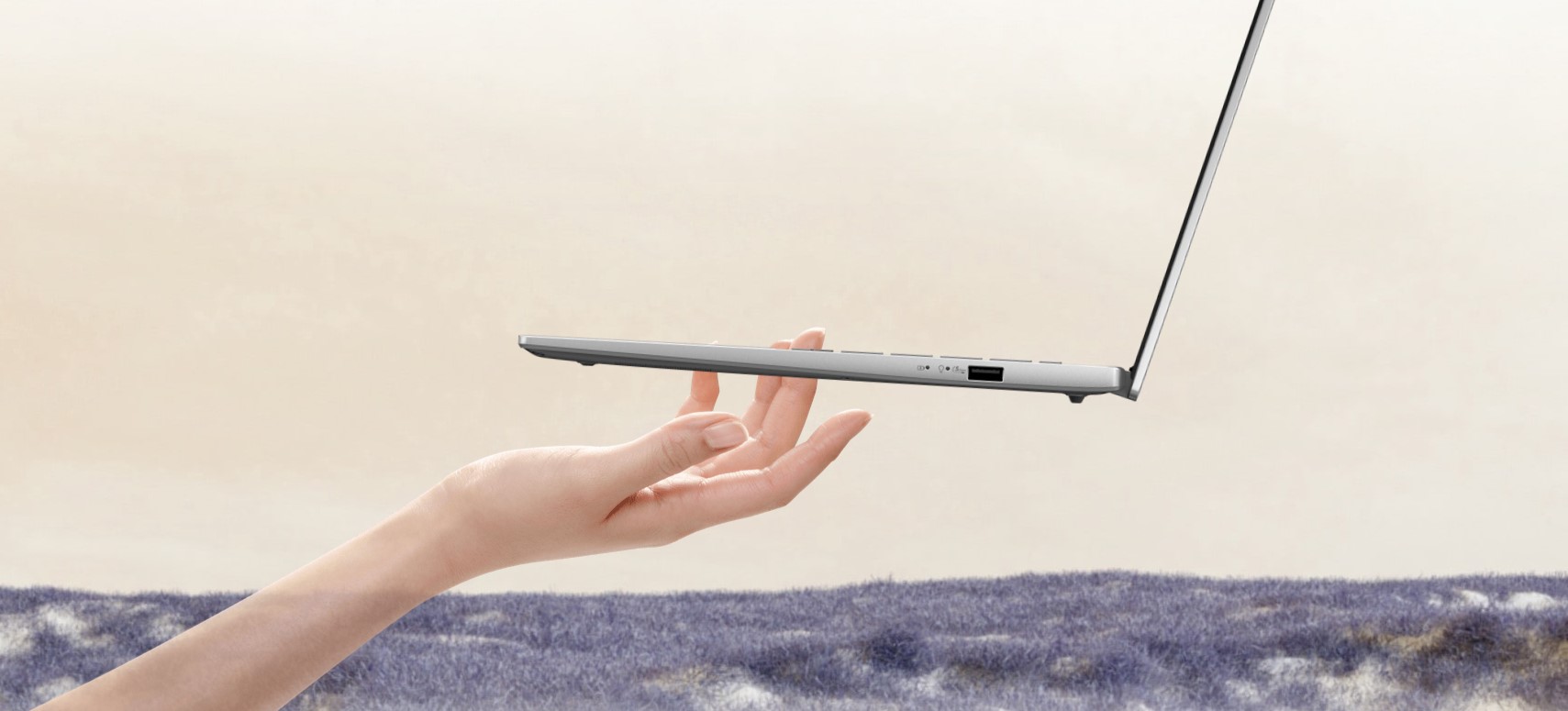 ASUS Vivobook S14 je stylový a moderní notebook s velmi tenkou a lehkou konstrukcí a přímočarým designem. Navenek je čistý a jednoduchý, ale uvnitř je plný výkonu. Jeho minimalistický vzhled se dokonale hodí k jakémukoli životnímu stylu a prémiové logo vyryté na CNC stroji mu dodává šarm. Objevte snadnou mobilitu a úžasný design, aniž byste museli obětovat výkon.