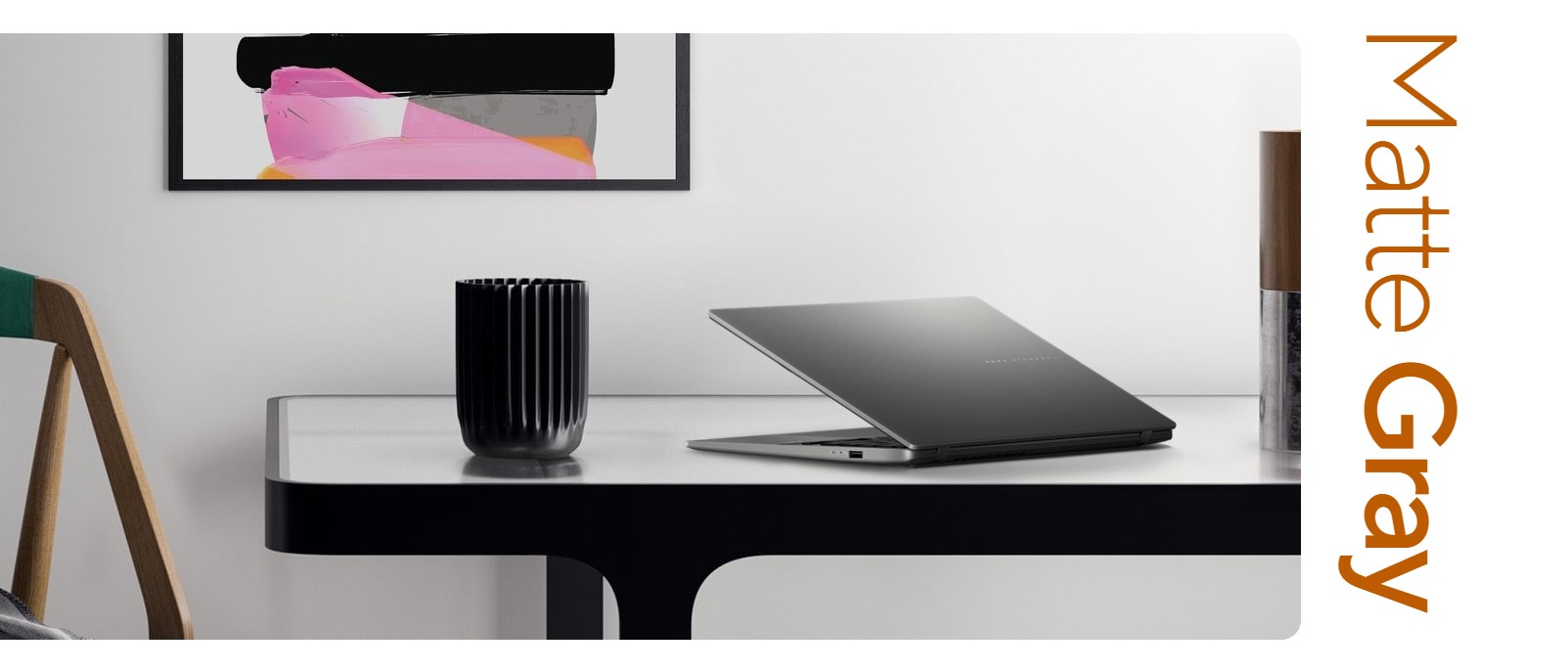 Harmonická neutrální barevná paleta a kovový povrch ztělesňují podstatu moderního životního stylu. Tento design je elegantní, ale nenápadný, což dělá z notebooku ideálního společníka pro tvůrčí úsilí i chvíle odpočinku.