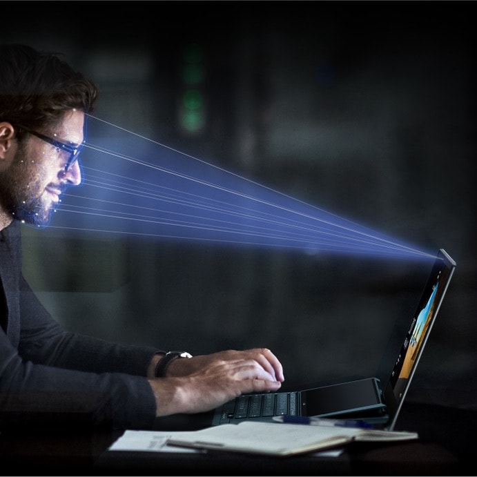 Windows Hello a infraÄŤervená (IR) kamera umoĹľĹuje rychlĂ© a bezpeÄŤnĂ© odemknutĂ notebooku.