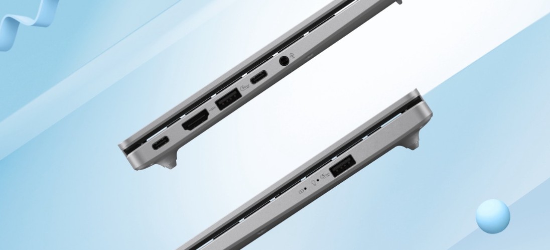 ASUS Vivobook 16 je váš dokonalĂ˝ pracovnĂ pomocnĂk dĂky rozsáhlĂ˝m vstupnĂm a vĂ˝stupnĂm portĹŻm. Je vybaven dvÄ›ma porty USB 3.2 Gen 1 Type-A, dvÄ›ma porty USB 3.2 Gen 1 Type-C s rychlĂ˝m nabĂjenĂm, portem HDMI a kombinovanĂ˝m audio konektorem. S Wi-Fi 6 si navĂc uĹľijete plynulou práci s cloud AI.