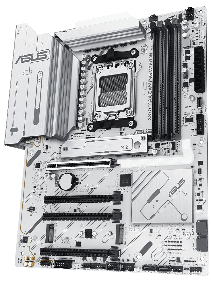 ZákladnĂ desky ASUS Ĺ™ady X870 jsou odbornÄ› navrĹľeny tak, aby naplno vyuĹľily potenciál procesorĹŻ AMD Ryzen™ Ĺ™ady 9000. ZákladnĂ deska X870 MAX GAMING WIFI7 W, která se mĹŻĹľe pochlubit robustnĂ konstrukcĂ napájenĂ, komplexnĂm Ĺ™ešenĂm chlazenĂ a inteligentnĂmi moĹľnostmi ladÄ›nĂ, poskytuje uĹľivatelĹŻm a stavitelĹŻm poÄŤĂtaÄŤĹŻ pro kutily Ĺ™adu optimalizacĂ vĂ˝konu prostĹ™ednictvĂm intuitivnĂch funkcĂ softwaru a firmwaru. Je navrĹľena tak, aby byla pĹ™ipravena pro pokroÄŤilĂ© poÄŤĂtaÄŤe s umÄ›lou inteligencĂ a nabĂzela vĂ˝kon a konektivitu potĹ™ebnou pro nároÄŤnĂ© aplikace s umÄ›lou inteligencĂ.
