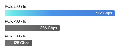 NejnovÄ›jšà procesory podporujĂ rozhranĂ PCIe 5.0, kterĂ© oproti PCIe 4.0 zdvojnásobuje rychlost pĹ™enosu dat, zvyšuje integritu signálu a poskytuje zpÄ›tnÄ› kompatibilnĂ konektory CEM a podporu pĹ™edchozĂch verzĂ PCIe.