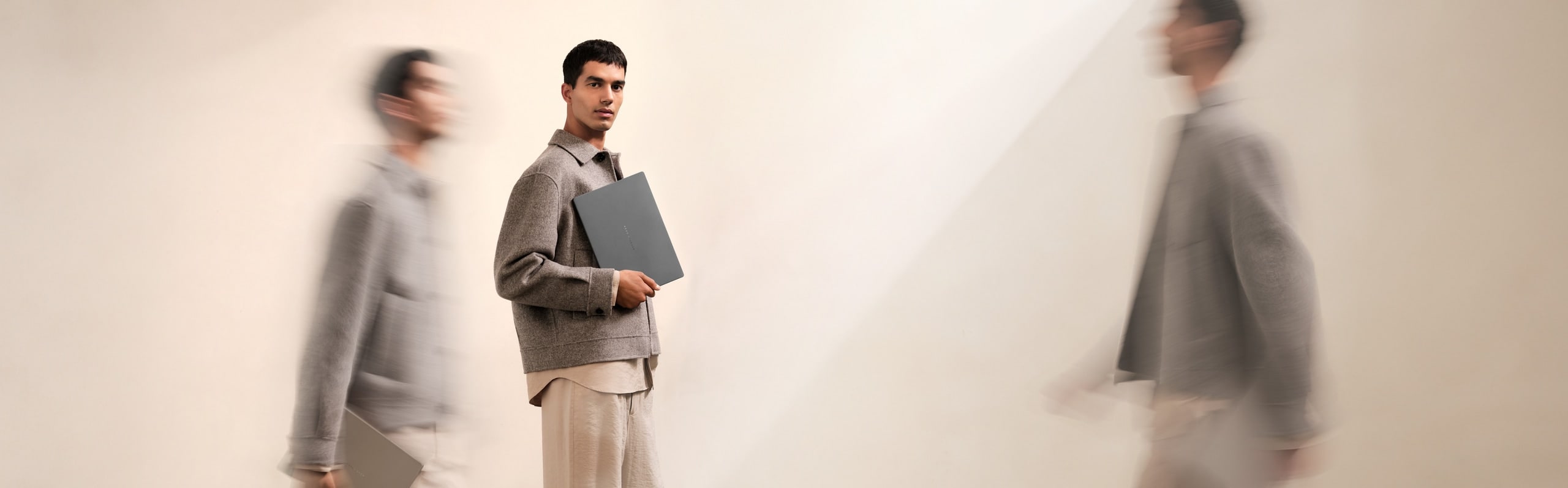 Zenbook A14 jsme navrhli tak, aby byl lehčí. Díky tomu s sebou můžete nosit jiné věci, na kterých záleží. Toto zařízení je vyrobeno z pečlivě vybraných lehkých materiálů, které zachovávají pevnost, zvyšují výkon a prodlužují výdrž baterie.