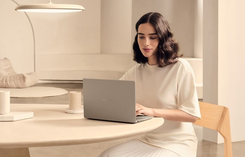 Zcela nový minimalistický design, který se vyznačuje barvami jednoho tónu a materiály inspirovanými přírodou, vyzařuje eleganci. Víko notebooku, rám klávesnice a základna jsou vyrobeny z materiálu Ceraluminum™, který je odolný proti opotřebení, poškrábání a šmouhám.