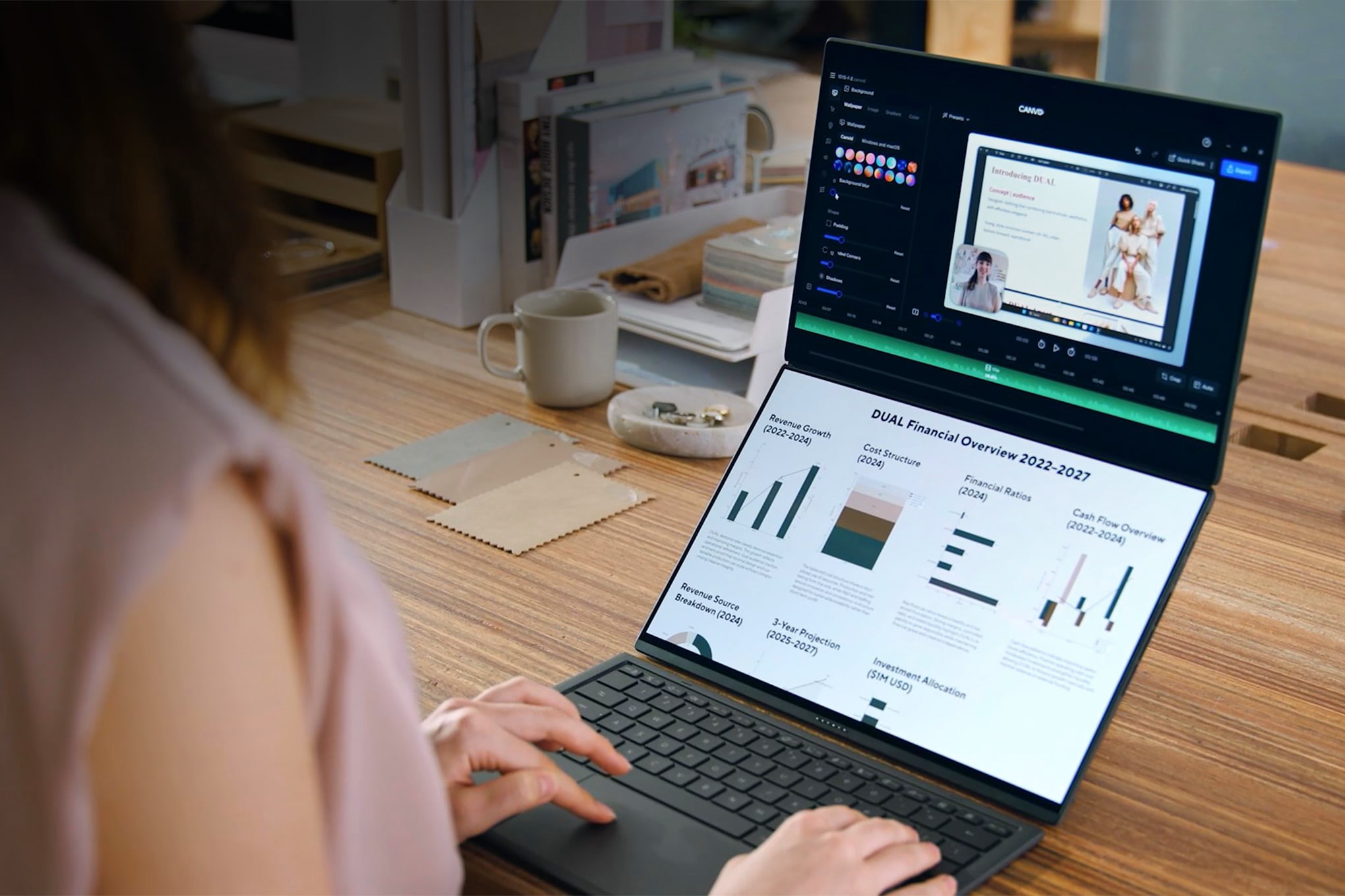 UniverzálnĂ provedenĂ modelu DUO se dvÄ›ma obrazovkami vám dává pracovnĂ prostor na Ăşrovni stolnĂho poÄŤĂtaÄŤe i na cestách. Jednoduše pĹ™epĂnejte mezi jedineÄŤnĂ˝mi reĹľimy, kterĂ© odpovĂdajĂ vašemu stylu práce a vyuĹľijte pĹ™ĂjemnĂ© softwarovĂ© funkce, dĂky nimĹľ jsou dvÄ› obrazovky intuitivnĂ, a ne těžkopádnĂ©.