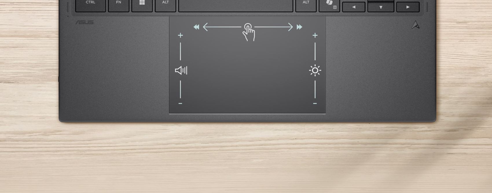 Touchpad ErgoSense podporuje vĂcedotyková gesta v systĂ©mu Windows a gesta ASUS Smart Gestures, abyste mohli pomocĂ gest s vyuĹľitĂm jednoho, třà nebo ÄŤtyĹ™ prstĹŻ spouštÄ›t ÄŤasto pouĹľĂvanĂ© aplikace, okamĹľitÄ› ovládat mĂ©dia nebo systĂ©m.