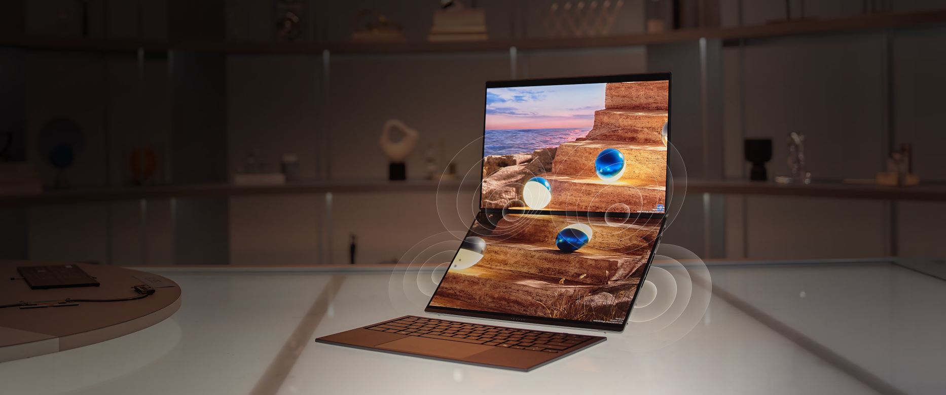 Ohromte svĂ© smysly dĂky dvÄ›ma ĂşchvatnĂ˝m dotykovĂ˝m 3K Lumina OLED displejĹŻm, kterĂ© nabĂzejĂ maximálnĂ jas aĹľ 1000 nitĹŻ2, antireflexnĂ vrstvu a novĂ˝ reĹľim E-Reading, kterĂ˝ pĹ™epĂná na ÄŤernobĂlĂ˝ obraz s vysokĂ˝m kontrastem a vylepšuje odstĂny šedĂ©, aby se pĹ™i dlouhĂ©m ÄŤtenĂ snĂĹľila námaha oÄŤĂ. VizuálnĂ zážitek doplĹuje šest reproduktorĹŻ s výškovĂ˝mi a basovĂ˝mi mÄ›niÄŤi, kterĂ© poskytujĂ bohatĂ˝ prostorovĂ˝ zvuk.