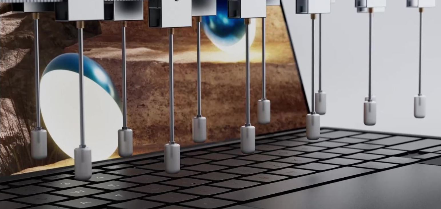 SnadnĂ© nastavenĂ DUO: inteligentnĂ sestava magnetĹŻ a zasouvacĂ pogo piny provádÄ›jĂ automatickou korekci polohy, zarovnávajĂ odnĂmatelnou klávesnici se spodnĂm OLED displejem a zajišťujĂ okamĹľitĂ©, niÄŤĂm nerušenĂ© pouĹľĂvánĂ a nabĂjenĂ.