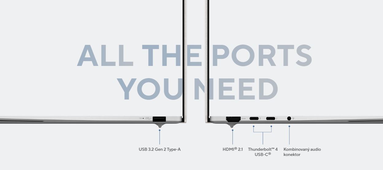 * 2x Thunderbolt™ 4 s podporou zobrazení/technologie Power Delivery