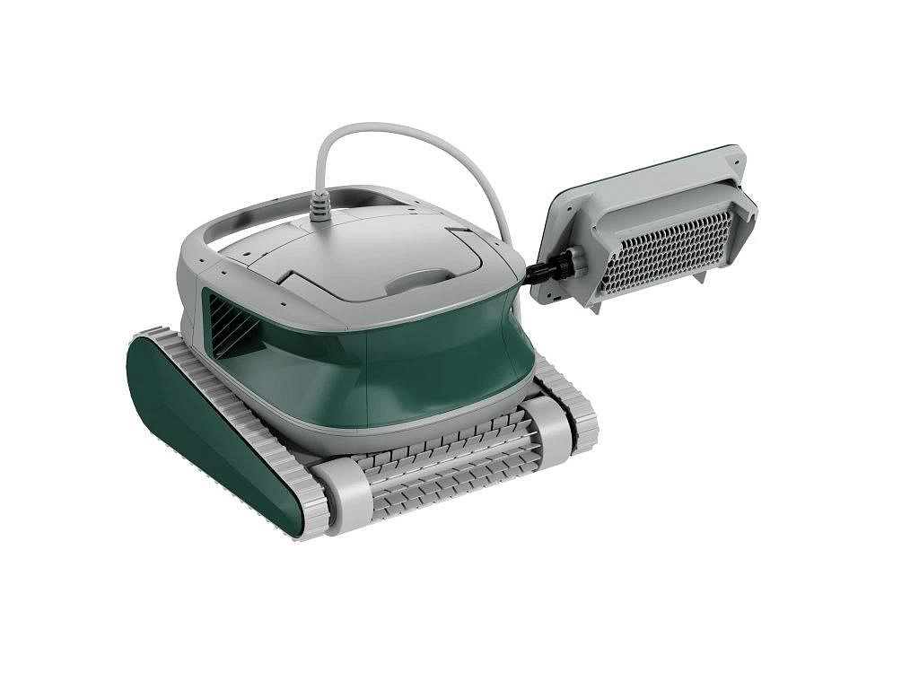 Údržba je velmi jednoduchá – vysavač lze otevřít shora i zespodu, filtrační koš snadno vyjmete, vysypete a opláchnete pod tekoucí vodou. Zesílené pásy s vyšším třením umožňují překonávání hlavních odtoků, světel a drobných nerovností dna.