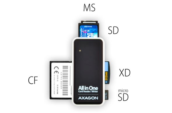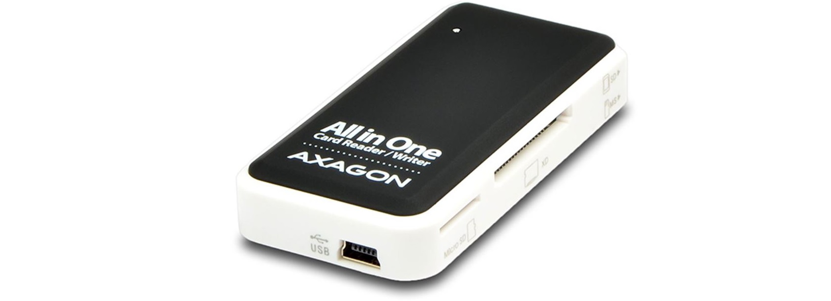 Velmi kompaktní all-in-one čtečka paměťových karet AXAGON CRE-X1 MINI podporuje všechny současné paměťové karty včetně všech verzí karet SDHC a SDXC.