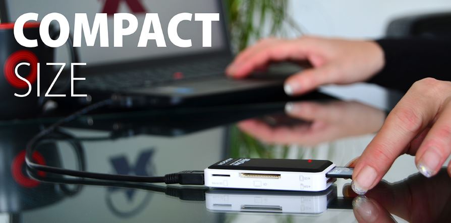 Čtečka paměťových karet AXAGON CRE-X1 MINI se svými minimálními rozměry vyrovná mnohým jednoúčelovým čtečkám. Přitom se však jedná o plnohodnotnou All-in-One čtečku.