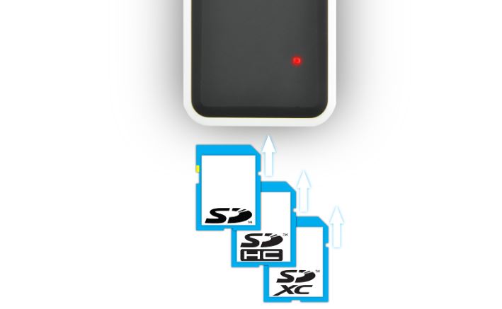Ve slotu pro SD karty jsou podporovány nejnovější karty SD, SDHC a SDXC až do kapacity 2TB.