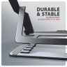 Stojan lze snadno složit do kompaktních rozměrů, což umožňuje pohodlné přenášení kamkoli potřebujete. Jeho elegantní design v šedé barvě nejen stylově doplní váš pracovní stůl, ale také přináší praktické funkce, které oceníte při každodenním používání.