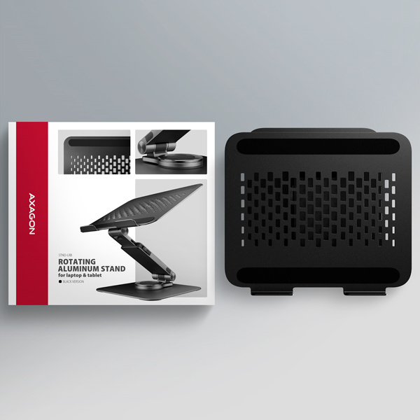 AXAGON STND-LRB, hliníkový stojan pro notebooky 10"-17.3" s nast. výškou, úhlem a 360° rotací, černý