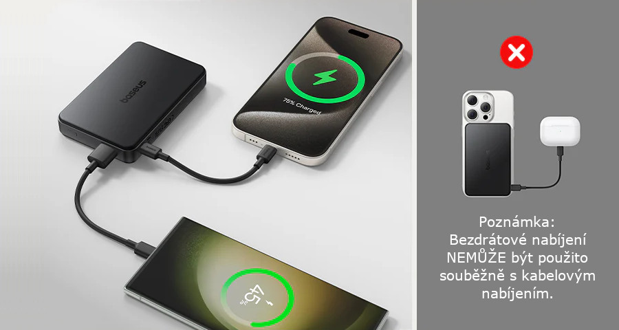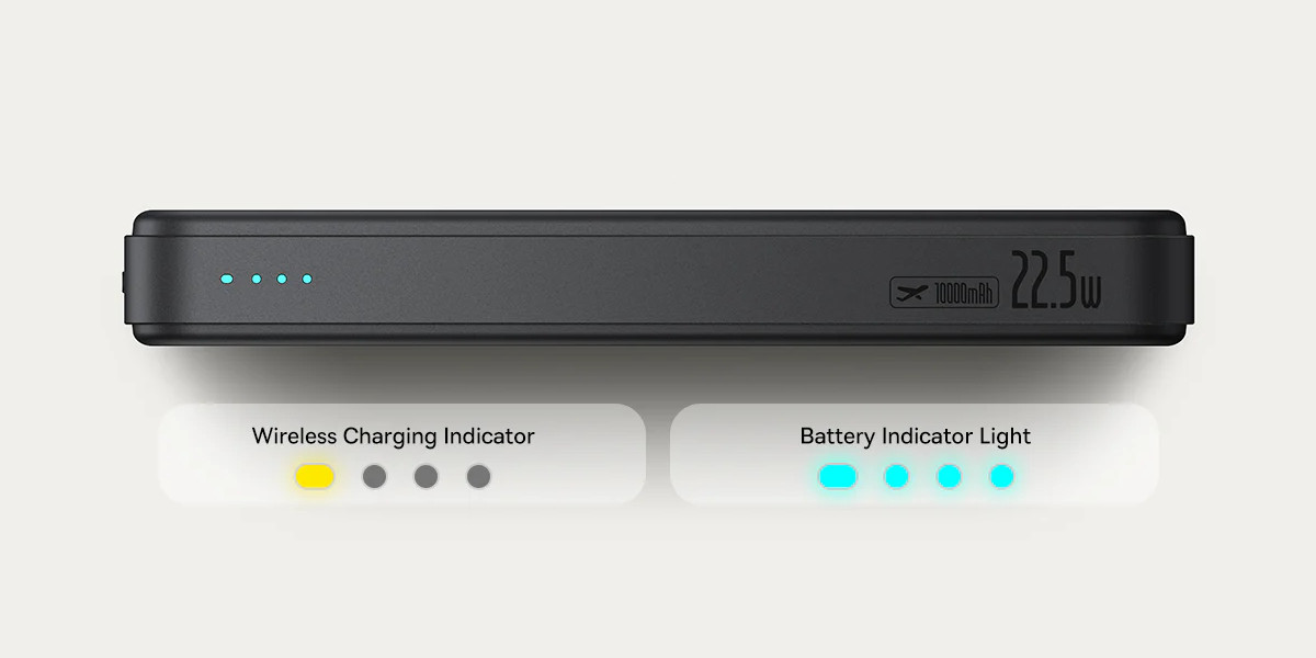 Tato powerbanka je navržena podle nejnovějšího standardu Qi2, který zajišťuje dvojnásobně rychlejší bezdrátové nabíjení oproti předchozí generaci – až 15 W bez kabelu.