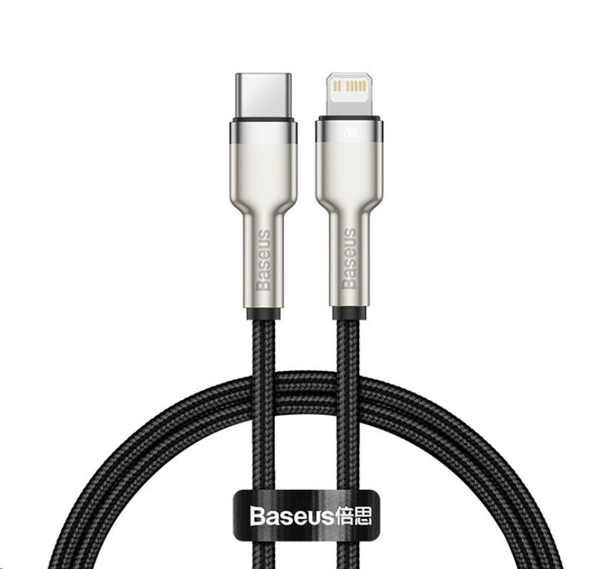 Kabel BASEUS Cafule Metal Series je odolný kabel, ve kterém jsou konce zástrček potaženy slitinou zinku, aby přežily dlouhé a intenzivní používání. Výrobek je také vybaven speciálním nylonovým opletením, které zabraňuje tření a chrání tak kabely uvnitř. Rovněž se zvýšila trvanlivost zástrček - prošly testem 10 000 připojení a byly speciálně profilovány tak, aby bylo možné kabel použít, i když je telefon v pouzdře. Kabel má funkci rychlého nabíjení PD 20W a přenosu dat. Jeho délka je 200 cm.