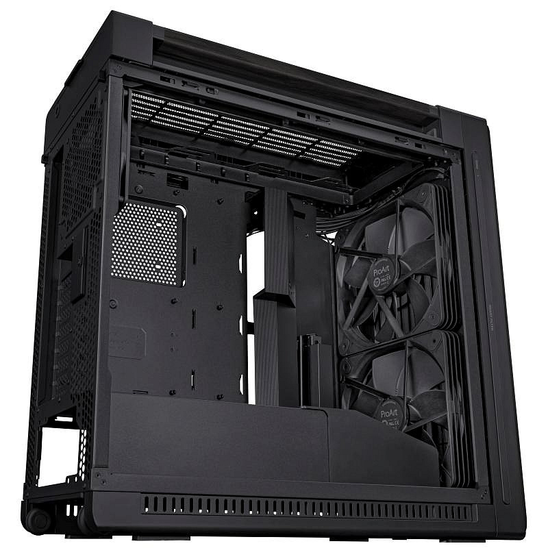Počítačová skříň ProArt PA602 E-ATX, podpěra chladiče 420 mm, jeden 140 mm a dva 200 mm předinstalované systémové ventilátory, IR indikátor prachu na předním panelu, západka zámku napájení, montáž PCIe bez použití nářadí, podpora USB 20 Gb/s