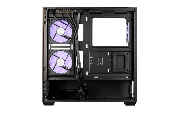 Model Elite 690 má čistý a moderní design a je vybaven dvěma panely z tvrzeného skla na přední a boční straně, které prezentují prémiové komponenty a osvětlení RGB. Přední panel kombinuje přírodní akcent s texturou dřeva se spodním sáním ze síťoviny, což přináší jak estetické teplo, tak efektivní proudění vzduchu. Díky rozsáhlému větrání na horní a spodní straně podporuje skříň univerzální konfigurace ventilátorů a chladičů, které umožňují výkonné vertikální chlazení. Ať už stavíte vysoce výkonnou předváděcí sestavu nebo stylovou stolní sestavu, Elite 690 poskytuje dokonalou rovnováhu mezi funkčností a formou.