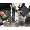 I přes tak velký prostor na vaření zůstal tento model kompaktní. Se svým praktickým hranatým designem se hodí na pracovní desku do každé kuchyně.
