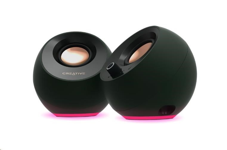 Vyberte si z nabídky RGB LED osvětlení a 3 světelných efektů a vytvořte si sestavu, která bude vyhovovat estetice vašeho pracovního stolu. Světla RGB reproduktoru Creative Pebble Pro vám umožní procházet spektrem barev, zařádit si s režimem pulzování, nebo si vystačit s jednobarevnou září.