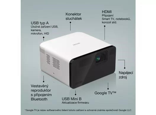 Vše, co streamujete. Vše na jedné promítací ploše. Získejte přístup k více než 400 000* filmům a televizním seriálům, vše na jednom místě. Služba Google TV™ vám přináší váš oblíbený obsah z aplikací a předplatného a organizuje je jen pro vás. Požádejte Google Assistant, aby našel filmy, streamoval aplikace, hrál hudbu a ovládl váš projektor – to vše hlasem*. Snadné přehrávání filmů, pořadů, fotografií a dalších filmů z telefonu nebo tabletu přímo do projektoru pomocí aplikace Google Cast*. Vestavěné 5W reproduktory Bluetooth lze používat s vizuálním displejem nebo bez něj.
