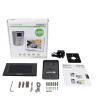 Balení obsahuje vše co je potřeba k jednoduché instalaci: vnitřní monitor, venkovní jednotku s kamerou, sadu šroubů a hmoždinek, svorky na kabely s páčkou.