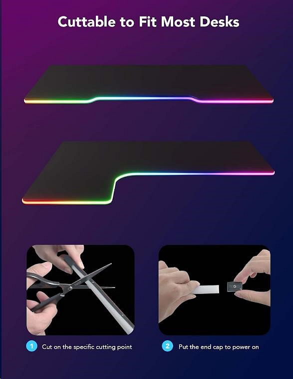 Instalace je velice jednoduchá pomocí 3M pásek. Govee Neon je pružný a ohebný pásek, který můžete tvarovat podle tvaru svého stolu. V balení jsou také svorky pro instalaci na stůl ve tvaru L nebo s pravými úhly. Celková délka je 3 metry a na pásku jsou značky, kde lze pásek zkrátit jednoduchým přestřihnutím pásku. Nestříhejte pásek mimo označené body k tomu určené, poškodíte tím kontakty a pásek.