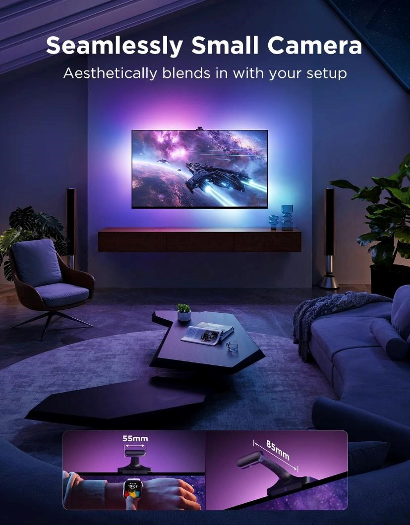 První na světě s trojitou HDR kamerou, Govee TV Backlight 3 Pro posouvá přesnost snímání na novou úroveň. Kamery sledují obraz z více úhlů, čímž dosahují detailnějšího a realističtějšího přenosu barev. Každý kout obrazovky je tak perfektně sladěný s okolním osvětlením.