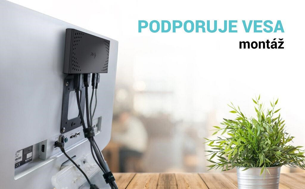 - Dokovací stanice podporuje držák VESA pro inteligentní vertikální instalaci za monitor s podporou VESA