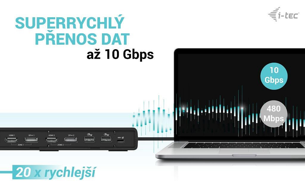 Výkonná kancelářská dokovací stanice s podporou superrychlých portů USB Gen 2. Dokovací stanice podporuje výstup až na dva externí monitory ve vysokém rozlišení až 4K. Dokovací stanici lze použít prakticky se všemi notebooky, protože podporuje připojení ke všem běžným portům: 3.0, USB-C a Thunderbolt“ 3/4 a zároveň podporuje všechny běžné současné operační systémy.