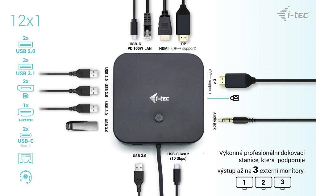 BAZAR - i-tec USB-C HDMI + Dual DP Docking Station + PD 100 W + Universal Charger 112 W - Po opravě (Náhradní krabice)