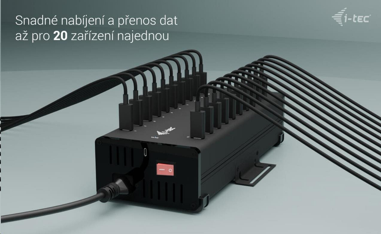 BAZAR - i-tec USB-C/USB-A Metal Charging + data HUB, 15W per port, 20x USB-C - Po opravě (Komplet)