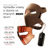- Flexibilní design – pohodlí a rovnoměrné působení světla. Maska z měkkého potravinářského silikonu dokonale přilne k obličeji a zajišťuje rovnoměrné rozložení světla bez ztrát energie a je pokožkou perfektně snášená. Dálkový ovladač je akumulátorový, takže máte volnost pohybu
