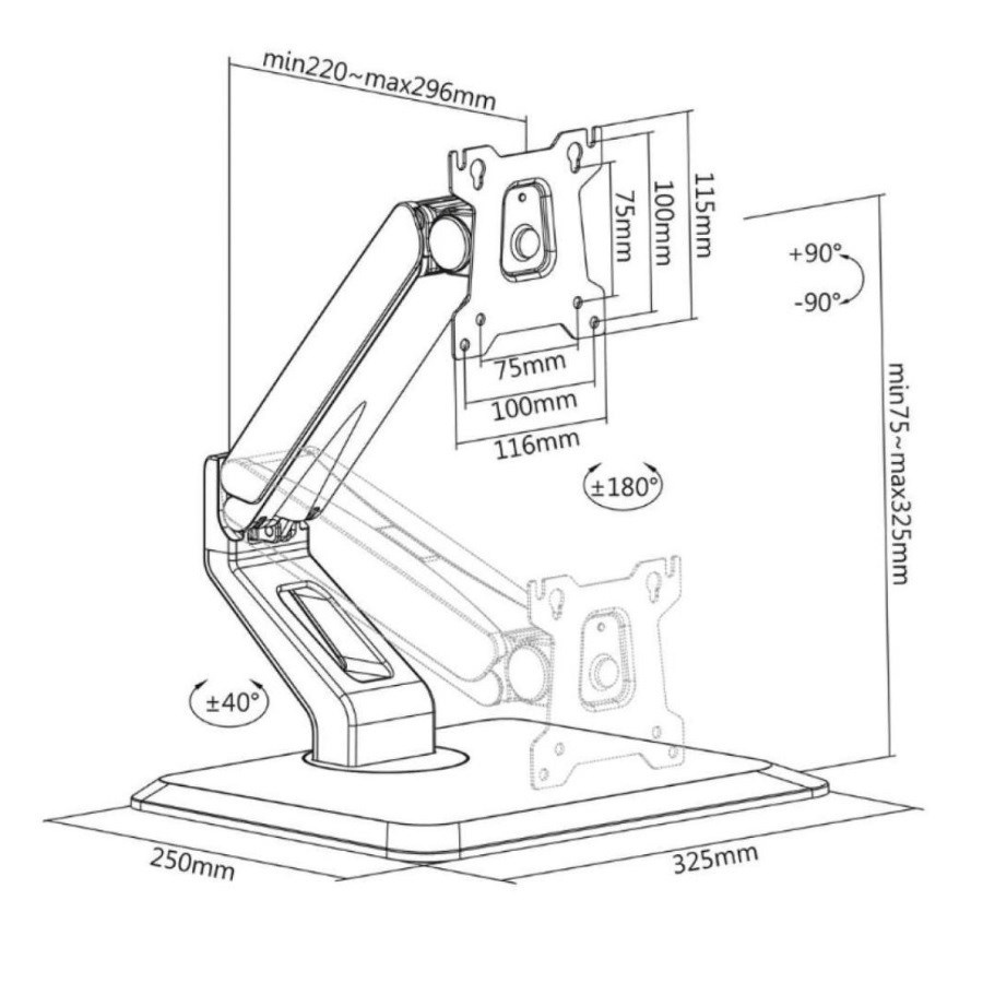 Rozbaleno, kompletníErgonomický stolní stojan na monitor Fiber Mounts FRIOS Polohovatelný stolní stojan na monitory 15-32" pro ergonomii Vaší práce, nastavitelná výška, otáčení do stran, velký rozsah naklápění, VESA 75x75 a 100x100, nosnost 10kg Designový stolní stojan pro skvělou ergonomii při práci s monitory. Stojan je ideální na monitory s úhlopříčkou 15-32", umožňuje nastavení výšky 75-325mm, naklápění ve velkém rozsahu až 90°, otáčení na obě strany +/- 40° a podporuje i funkci pivot. Konstrukce je upravena pro vedení kabeláže. Rozměry stabilní podstavy 325x250mm. Podporuje VESA standardy 75x75 a 100x100 a maximální zatížení je 10kg. Rukojeť obsahuje plynovou pružinu pro nastavení dle hmotnosti monitoru, proto je výškové polohování extrémně snadné a rychlé. Stojan je možné použít i na menší televize s úhlopříčkou do 32". Držák je vhodný i pro používání dotykových monitorů. Stolní ergonomický stojan na monitory 15-32" snadno polohovatelný Fiber Mounts FRIOS Technické údaje: nosnost 10kg podpora VESA standardů 75x75 a 100x100 vhodný na monitory a menší televize 15-32" vynikající ergonomie výškové polohování 75-325mm otáčení do stran +/- 40° naklápění +/- 90° pivot +/- 180° rozměry podstavy: šířka 325mm, hloubka 250mm plynová pružina pro snadné a rychlé nastavení výšky velmi pěkný design vynikající kvalita, skvělá stabilita, snadná instalace systém pro vedení kabeláže barevné provedení černé záruka 3 roky Ergonomický stojan na monitory Fiber Mounts M8C95Podstavec - stojan na monitor, ergonomický, snadno polohovatelný Fiber Mounts M8C95 Monitorový stojan podporuje VESA standardy: VESA 75x75 VESA 100x100 Inovativní držák monitoru se stojanem je navržen pro snadné používání klasických, prohnutých nebo dotykových monitorů. Díky tomuto držáku si vytvoříte ergonomický pracovní prostor doma i v kanceláři. Držák monitoru je vhodný pro monitory nebo televizory s úhlopříčkou od 15" do 32" se standardem VESA s rozměry 75x75 nebo 100x100 a hmotností do 10 kg. Díky širokým možnostem nastavení můžete monitor nastavit v ideálním úhlu..