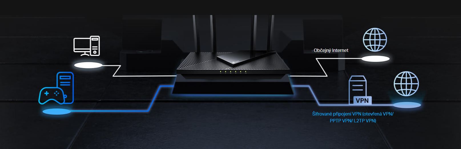 UmoĹľnÄ›te zaĹ™ĂzenĂm ve vašà domácĂ sĂti pĹ™Ăstup ke vzdálenĂ˝m serverĹŻm VPN bez nutnosti instalovat software VPN na kaĹľdĂ© zaĹ™ĂzenĂ. Archer AX55 Pro mĹŻĹľe souÄŤasnÄ› provozovat jak VPN, tak běžnĂ© internetovĂ© pĹ™ipojenĂ, coĹľ pĹ™inášà bezpeÄŤnost a flexibilitu.