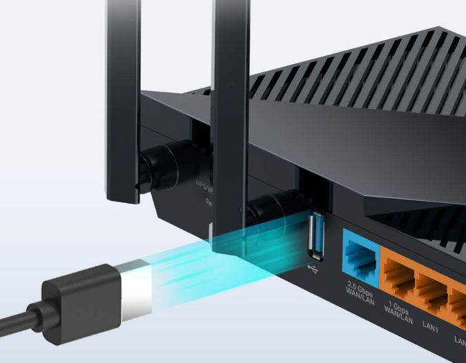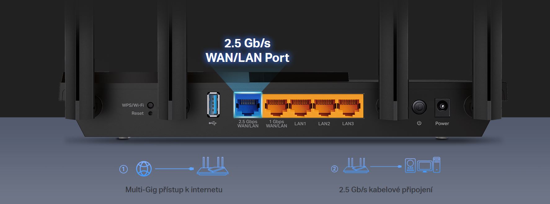 *2,5G multigigabitový port: 1 × 2,5 Gb/s WAN/LAN port + 1 × 1 Gb/s WAN/LAN port + 3 × gigabitové LAN porty + 1 × USB 3.0 port zaručují maximální flexibilitu a zvýšenou propustnost.