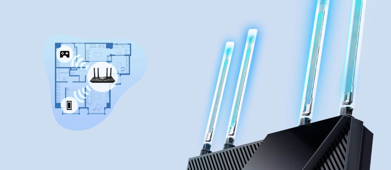 4Ă— vysoce vĂ˝konnĂ© antĂ©ny zesilujĂ WiFi signál v celĂ©m vašem domÄ›. Technologie Beamforming detekuje zaĹ™ĂzenĂ a koncentruje signály smÄ›rem k nim, zejmĂ©na do dĹ™Ăve těžko dostupnĂ˝ch oblastĂ.